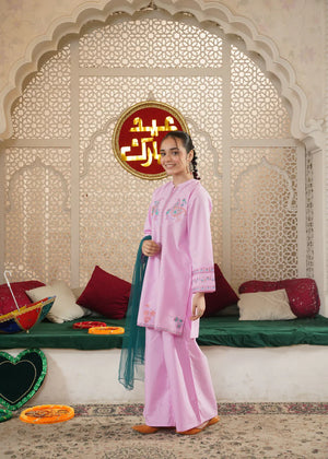 Celebrate in style with our Girls' Pastel Pink Festive Suit, a perfect blend of traditional elegance and modern comfort. Designed specifically for festive occasions, this 3-piece ensemble ensures your little one looks radiant while staying perfectly comfortable all day long.