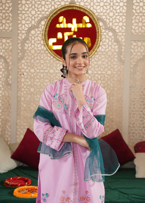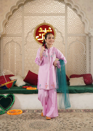 Girls' "Amethyst Meadow" Multi-Thread Embroidered 3-Piece Festive Set